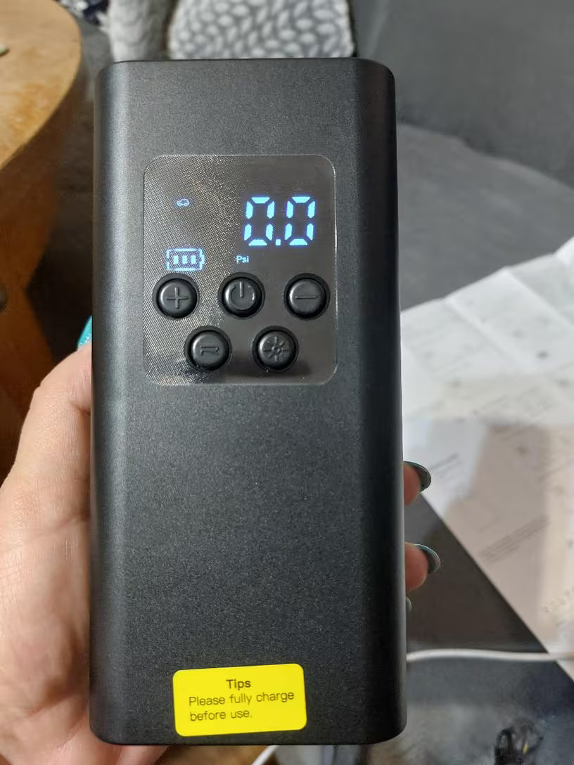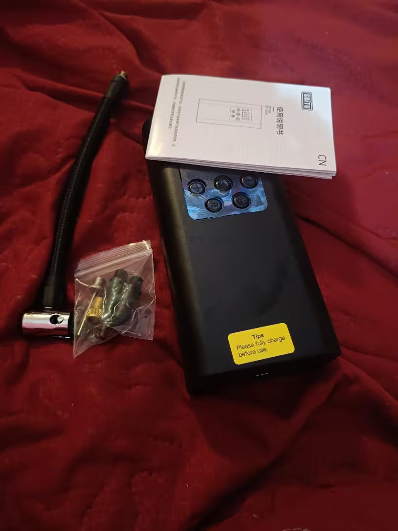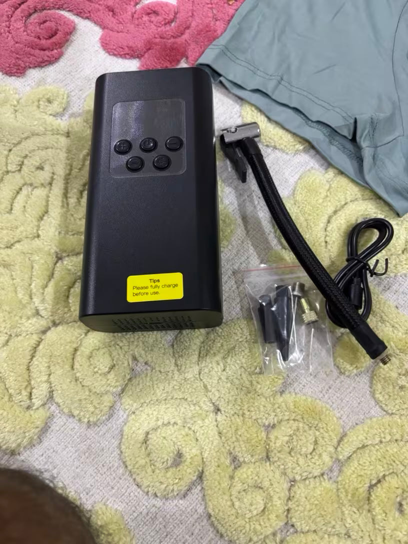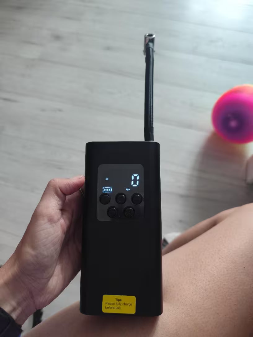 Great pump with various nozzles for balls, bicycles, motorcycles, and cars. It's quite loud, but that's not a big deal, as it gets the job done. It also comes with a storage bag. I highly recommend it!