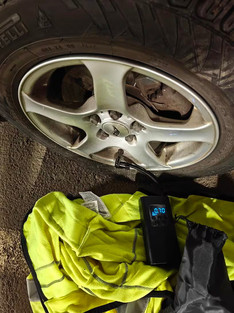 You can use it anywhere. It’s cordless and rechargeable, so there’s no need to connect to your car or a power source. Perfect for roadside use, home, or travel.
